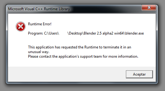 Hola a todos. Acabo de bajarme Blender 2.5 alpha2 win64 y al ejecutarlo me ha salido el siguiente mensaje de error, no se pudo iniciar la aplicación, la configuración en paralelo no es correcta.
