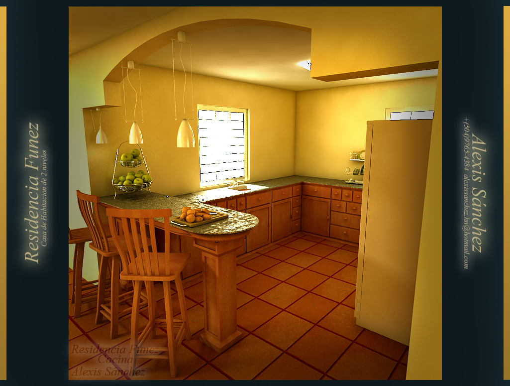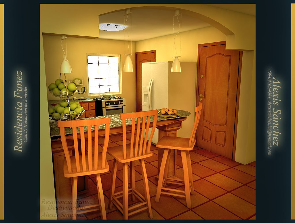 Muy bonitos lo renders felicidades, a mi humilde opinión en el diseño en el detalle de la cocina veo que la forma recta antes del arco rebajado está muy baja si la puerta standard tiene 2.10 metros de altura esto a de tener como 1.95 más o menos.15 menos y está muy baja, se ve a simple vista y le hubiera dado muchísima vista colocarle el marco de madera sobre las aristas del detalle de la cocina para que jugara con toda la casa, de verdad muy buen trabajo, por lo demás en los renders ni hablar.