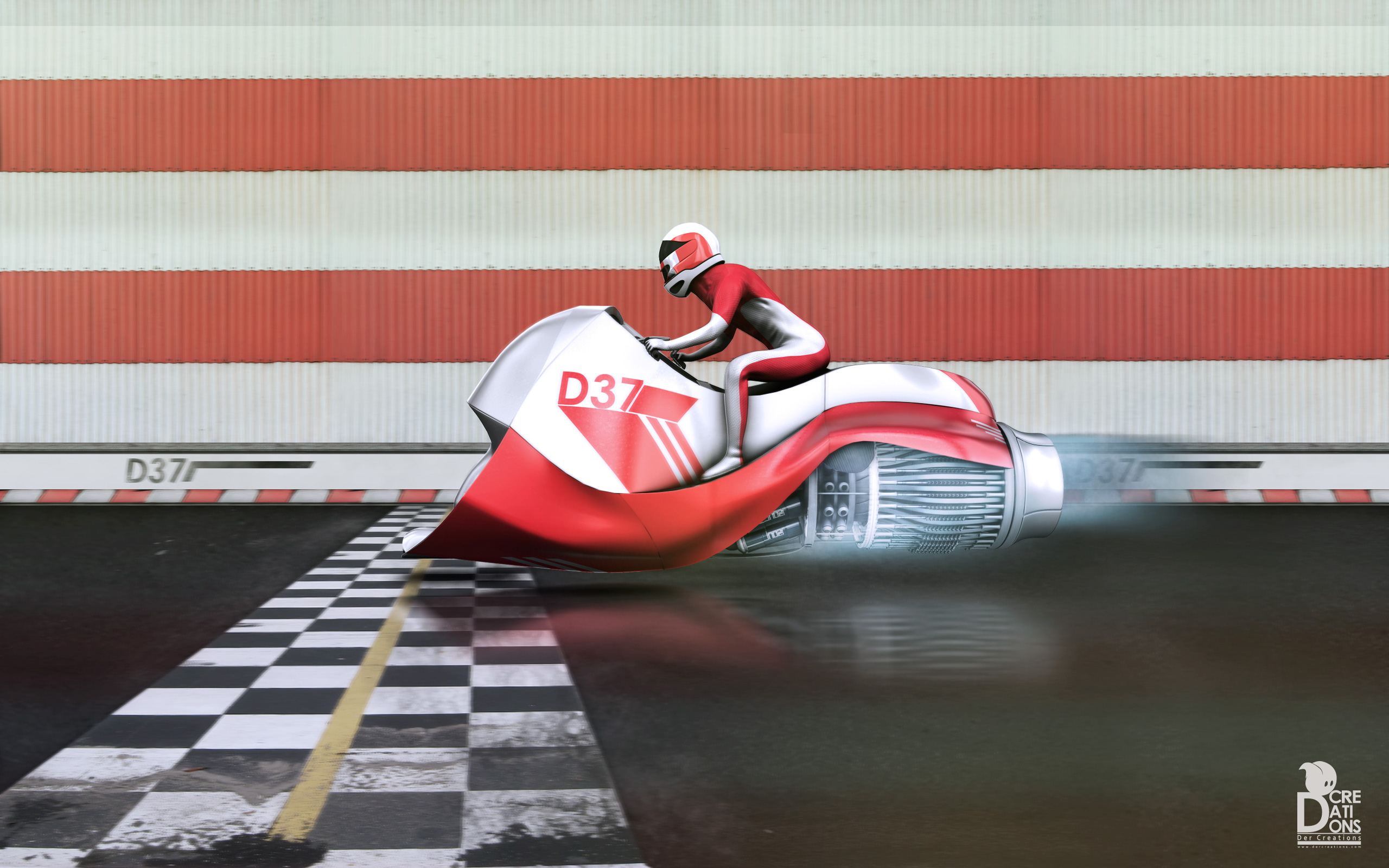 Esta es mi idea de motociclismo con turbinas. En la fotografía de mi competidor d37 va más, allá de la línea de meta en el modelo rojo, que representa a su equipo. Esta es mi segunda entrada para el concurso nvart 5: acelerate. Modelado en Maya renderizado con Mental Ray. El fondo de carretera echo en Adobe Photoshop.
