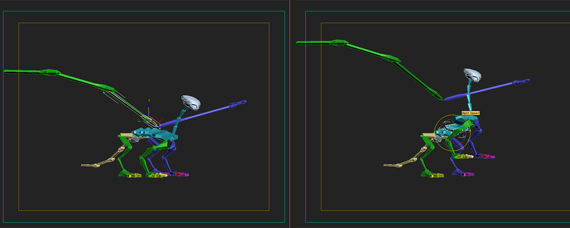 Para solucionarlo intente alinear el punto de pivote del primer hueso del ala con el punto de pivote del hueso de la columna, pero no me deja, otro problema que tengo es que no puedo vincular las alas a un dummie que a su vez este vinculado y alineado con el hueso de la columna, por que necesito exportar este Biped y su malla a formato FBX y estoy casi seguro que este formato no permite exportar vinculaciones.