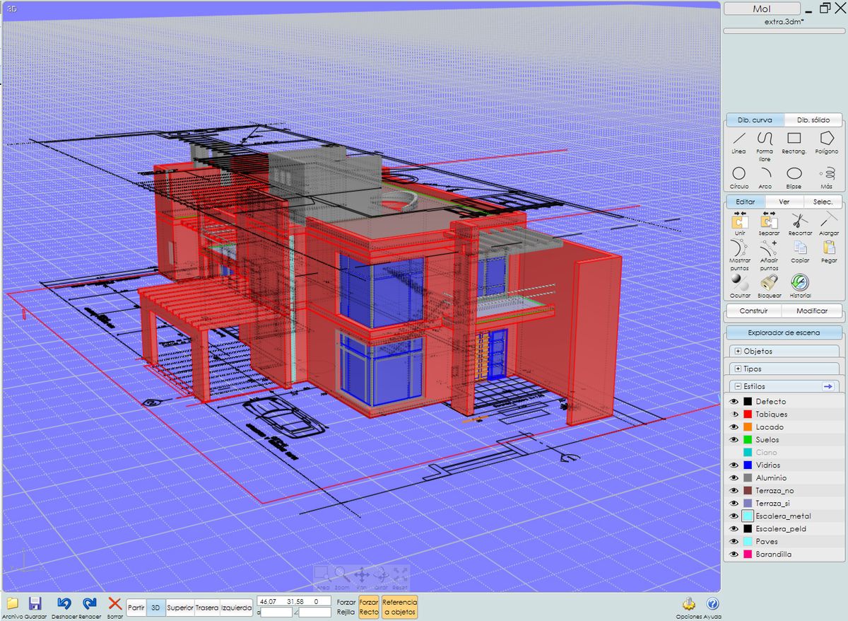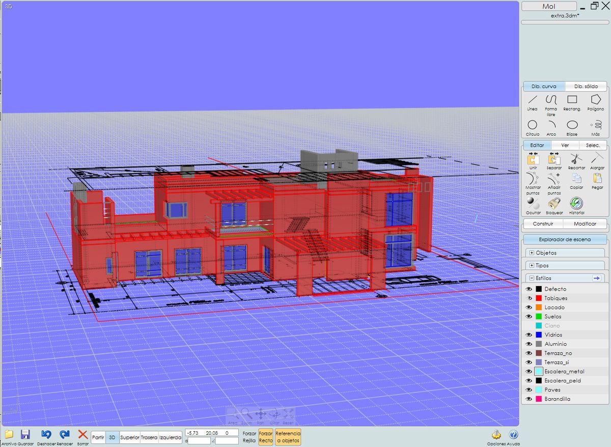 El proyecto es de un arquitecto, compañero de trabajo, quien gentilmente lo ha compartido para este fin, y he de suponer que la obra esta finalizada desde hace un par de años. Las plantas han sido limpiadas para evitar que se produzca plagio del proyecto. También se ha modificado el emplazamiento del lote ya que este se encontraba entre medianeras y se ha colocado en esquina para permitir una mejor apreciación en las vistas generadas, modificando algunos muros para tal fin.
