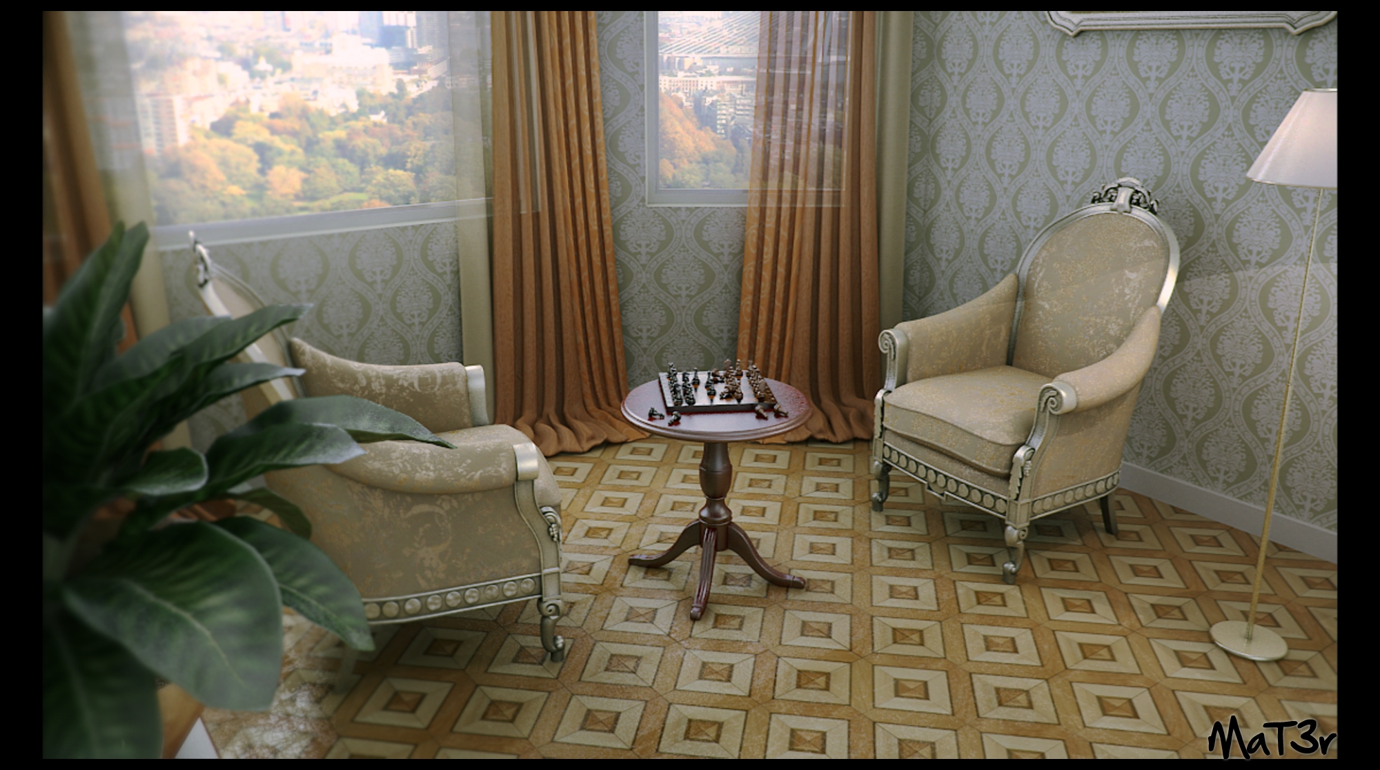 Hola mat3r, ¿Qué tal? La escena está muy conseguida, me llama la atención la textura de los sillones y la planta en primer plano.