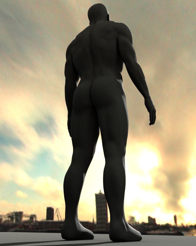Más que la figura en sí falla la ropa, hay ajustes donde no se deben de poner, veo muy ajustada la ropa en sitios donde no debería estar, parece que tuviera gomas en las rodillas. Fíjate, en la parte de detrás no tenía que estar metido el pantalón en la corba, ahí tendría que estar más estirado y colgando, más real, te aconsejo que te mires con un pantalón que se supone es suelto, no debe marcar tanto, no se puede ver tanta anatomía ya que esta cubierta, es un error ajustar tanto.