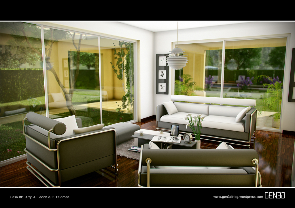 Me gusta mucho, bien modelado, ambientado, pero hay algo raro con la iluminación, en todos, que salta muy obvio en el interior, los agulos están muy oscurecidos y la luz esta quiemada, sale muy blanca en el interior y supongo que, por eso le habrás decidido oscurecer los ángulos, en los exteriores se ve sombra en ángulos raros de que la, allá, como el encuentro de la casa con el piso, están ocuros y no sé si eso realmente seria así, creo que es todo parte del mismo problema.