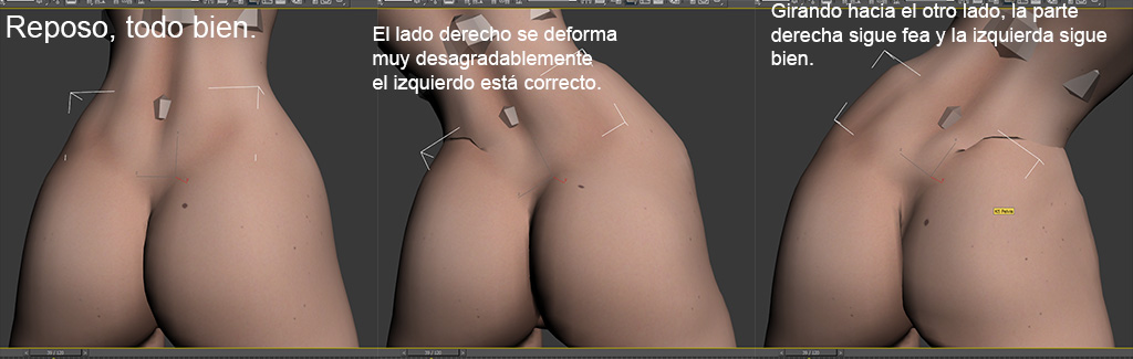 Al usar Physique con triangle pelvis, se generan unos enlaces que van desde la base de la columna hasta los muslos, ok, eso lo sabemos casi todos. Mi pregunta es: ¿por qué al hacer un Rig completamente simétrico usando esos enlaces, ambas partes reaccionan de manera distinta, quedando un muslo bien y el otro bastante mal, teniendo iguales parámetros en links, y en vértices, iguales pesos, etc? He hecho algo mal, se me escapa algo o es cosa de Physique?