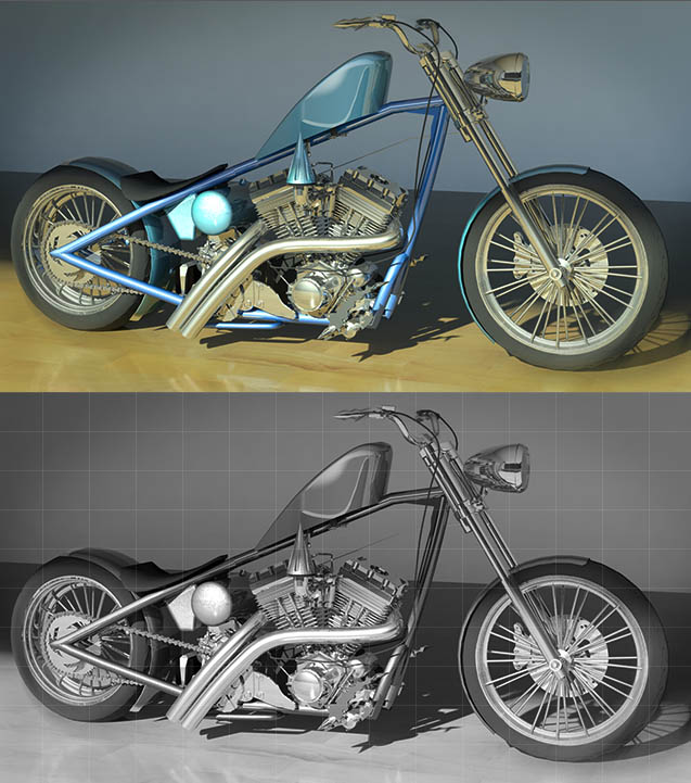 Hola. Se trata de un render de una moto choppera artesanal. Ideal para subirse y viajar por sud América.