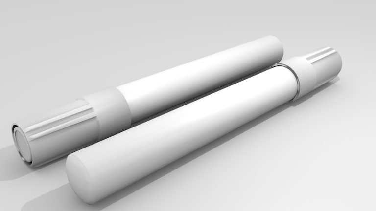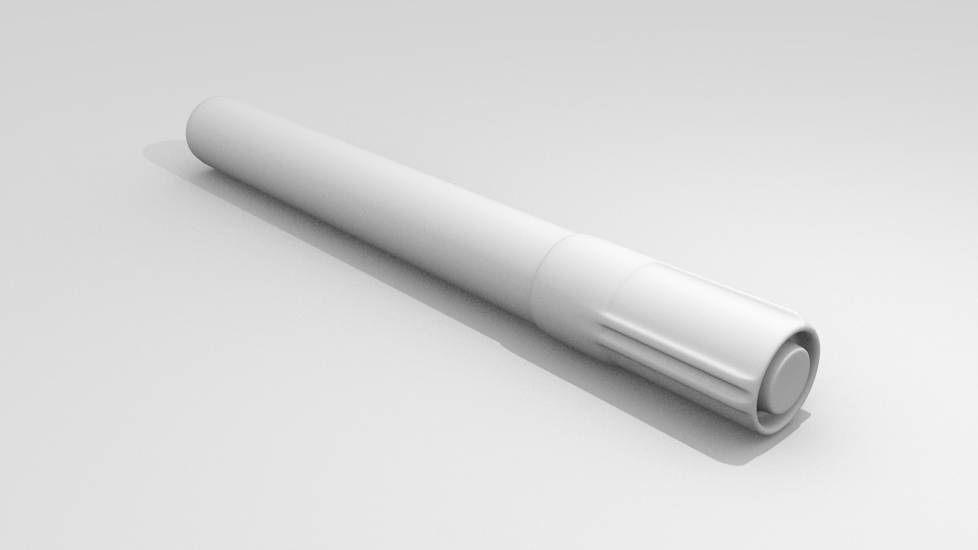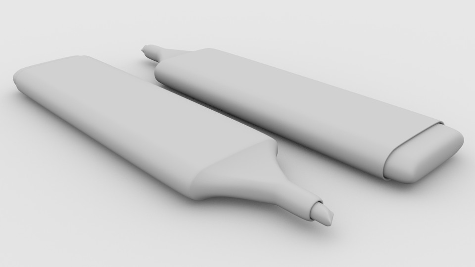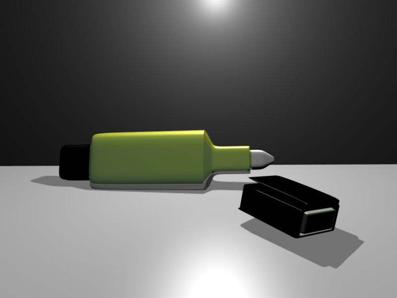 Aquí el rotulador. Lo hice de una sola pieza (cuerpo y tapón) y partiendo de un cubo, sursubfeando, extruyendo y escalando.