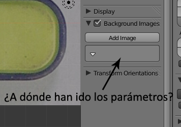 El modelo no me quedó como yo quería porque estoy teniendo un problema muy raro con Blender. Al importar una imagen con background image, en cuanto la imagen esta colocada en la vista, los parámetros desaparecen y no puedo editar ni el tamaño, ni la posición X e Y, ni siquiera eliminarla o agregar nuevas imágenes en otras vistas. Y claro, si no tengo las referencias visuales el modelo me sale hecho un churro.