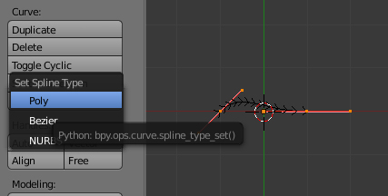 Al añadir la curva Bézier, entra en modo edición, selecciona todos los vértices (tecla a). A la izquierda de la pantalla del programa tienes una ventana (si no se ve pulsa t) con varios botones, pulsa set Spline type, aparecerá un menú y ahí escoge poly y ya está.