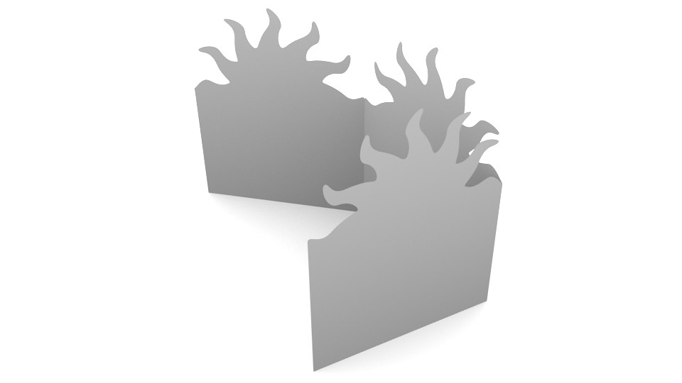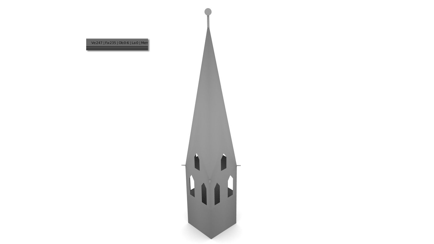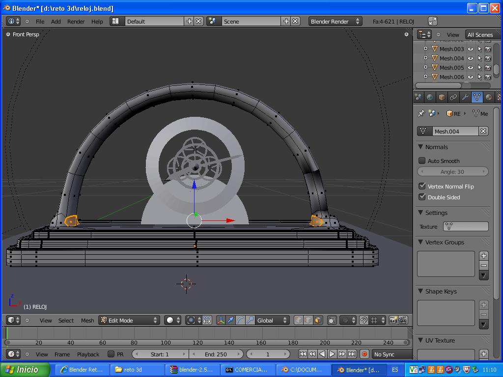 Pues se ve feo, pero no imposible, se me imagina hacerlo con curvas besier, solo tengo una duda con la versión 2.5. Ya estaba acostumbrado a la 2.49, y no ubico donde convierto a poli las curvas de Bézier, sino será con un plano extruyendo.