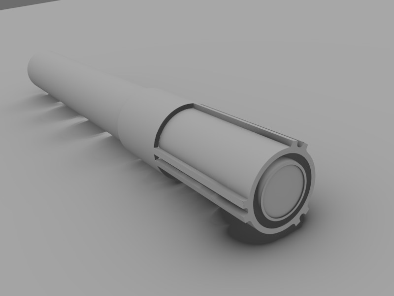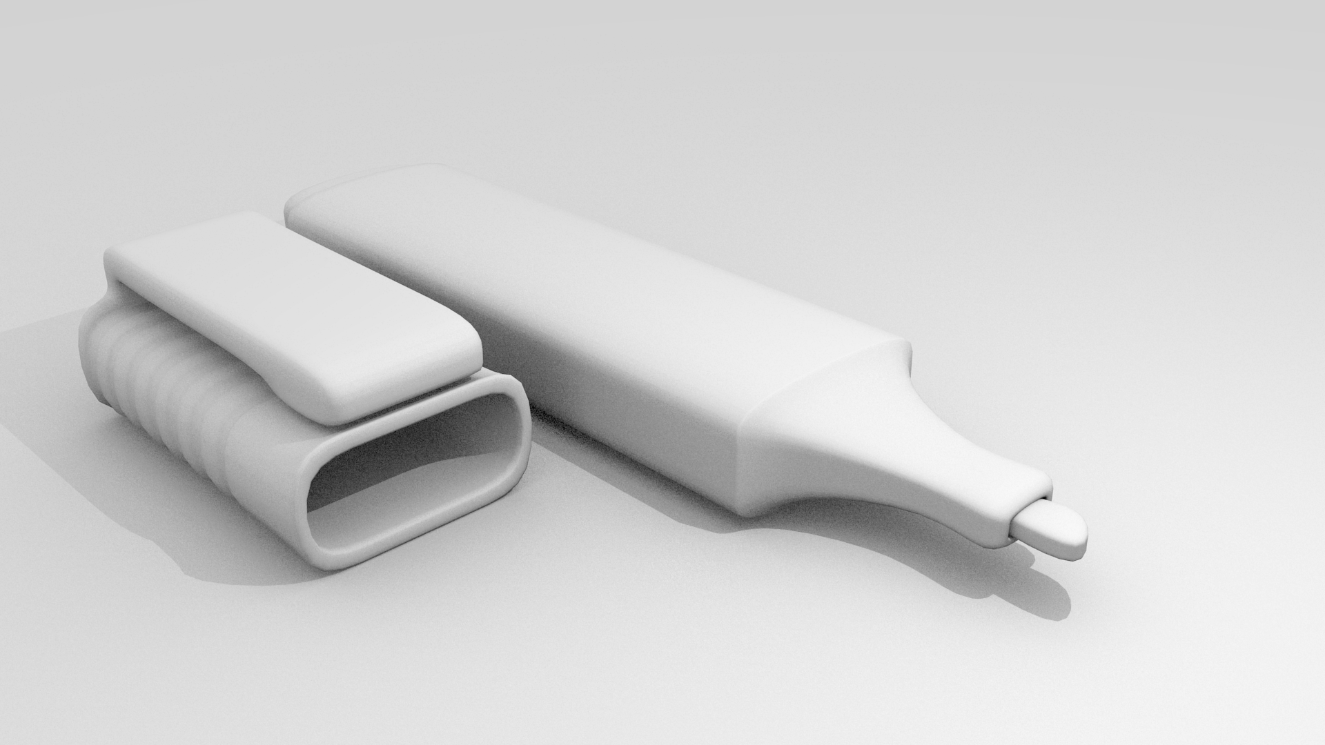 Buena iniciativa Louis. Para lo de las estrías del tapón, te aconsejaría que el tapón fuera un objeto independiente del resto del rotulador. Con eso, el tapón lo dividirías con el número de segmentos que necesites para extruír las estrías. La otra opción es crear los salientes aparte (con cajas), colocar el cursor en el centro del tapón y duplicarlos alrededor tomando el cursor 3d como pivote. Eso sí, este segundo método sería más bien para un modelo sin mucho detalle o exactitud, pues si te acercases mucho al modelo, se notaría que son cajas ahí pegadas.