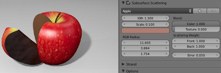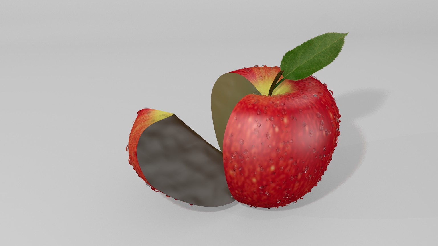 Ayer vi este tutorial en blendercookie para hacer una manzana, está muy bien, te enseñan a crear la textura en Adobe Photoshop y luego juega a ver cómo mapearla para que quede bien. Después para que no se vean las costuras las pinta desde el propio Blender clonando ciertas partes.