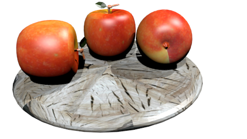 La textura de las manzanas parece que giran en horizontal (paralelos), igual quedaría mejor en vertical (meridianos). Y la forma me recuarda más a una pera, si fuera más grueso en la parte superior quedaría mejor, ¿no crees?