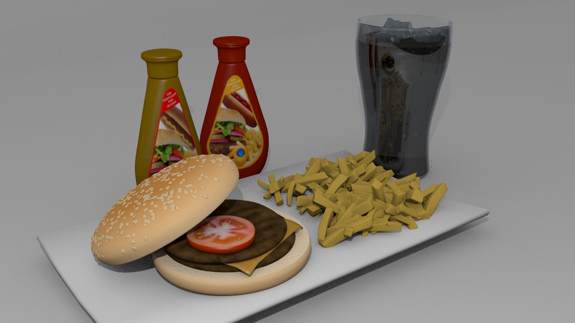 Louis husalban, ponedle más tomate que parecéis los jefes de la hamburguesería. Va bien. Husalban, la coca-cola me la bebo, las patatas de momento se quedan en el plato, si que echaría kétchup, mostaza no porque no me gusta el perfecto pan esta como para dar zapatillazos al enemigo (con esto quiero decir que está bien modelado perfectamente modelado) ahora solo tienes que romper esa simetría. En cuanto a la carne ejem (si la usara como frisby no sé si el perro saldría corriendo detrás). La carne que tiene buena pinta es la que tiene brillo Specular recién salida de la parrilla, solo de pensarlo.decidido hoy me voy al burger.