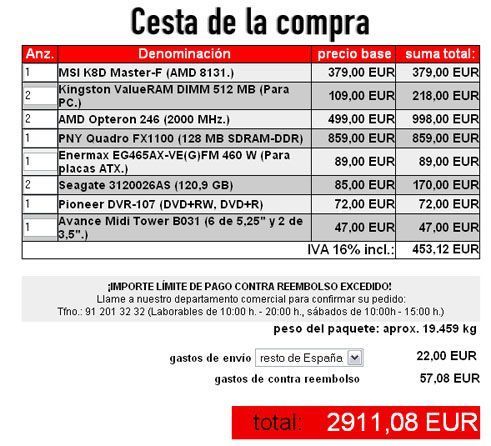 Aquí tengo un presupuesto, en base a lo que me envió Mesh. A ver qué les parece. No estoy muy seguro acerca de los micro, no pude encontrar los Opteron. Hay alguna otra forma en que los llaman? Gracias.