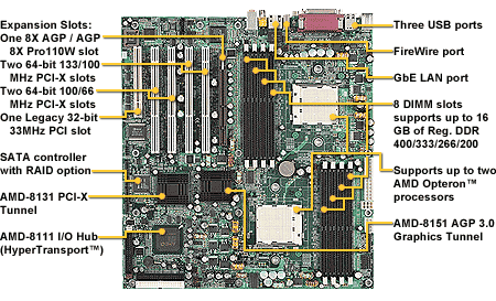 En cuanto a placas base para Opteron lo mejor son las Tyan. Un tío de tienda3d, com que sabía un huevo me comentó que para estaciones de trabajo para 3d lo mejor son las Tyan Thunder-noseké (yo me pillé la k8w, aunque hay una mejor) y las pruebas de tarjetas gráficas y tal las hacen con ordenadores con esas placas. Esto es lo que yo se en mí limitado conocimiento, pero es información fiable.