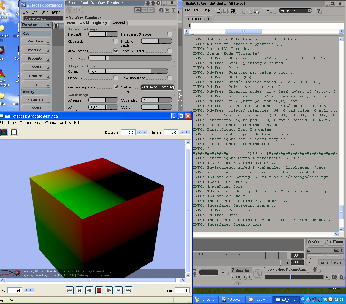 Ahí estamos, a punto de lanzar la primera versión funcional de Yafray for Softimage. Ya está también disponible, el código fuente del exportador, en github, por si alguien se siente con ganas de participar en el proyecto.