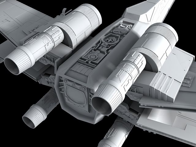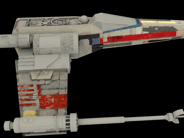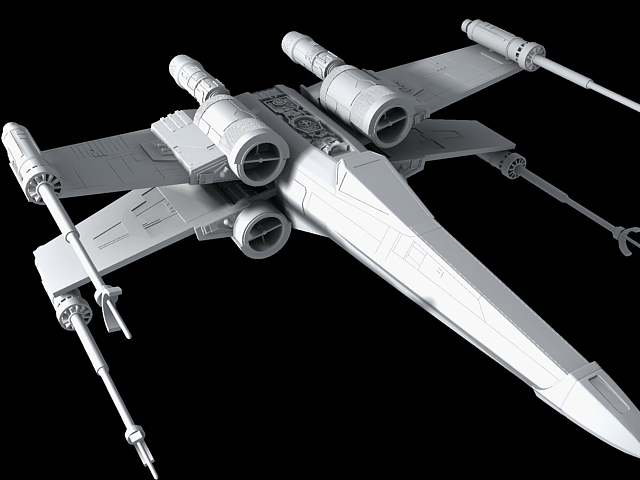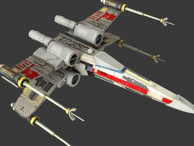 Pues acabe con el x Wing, os lo pongo bien grande y con el valor de antialiasing very high para que le podáis sacar todos los defectos que queráis, renderizado en Vray. Saludos.