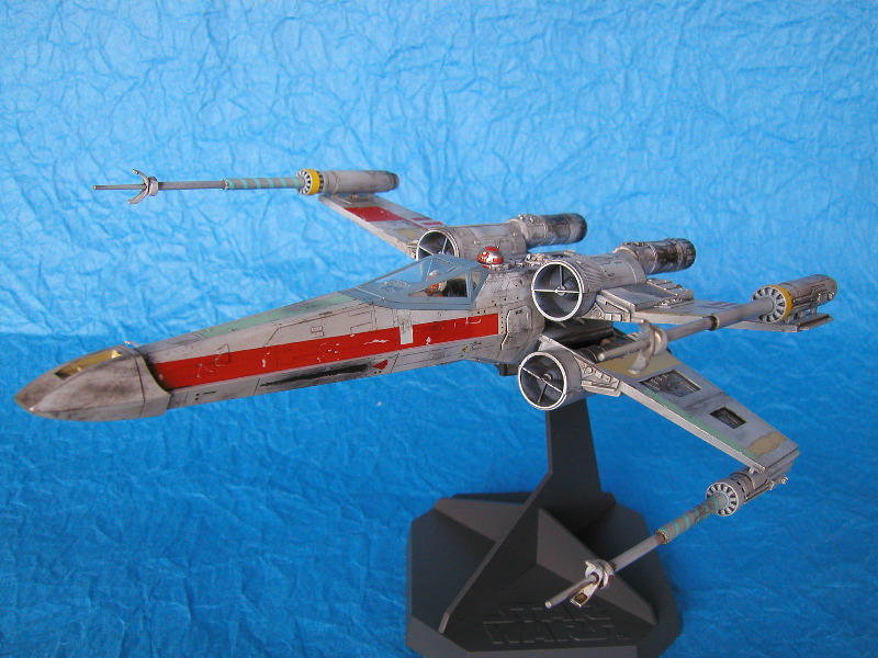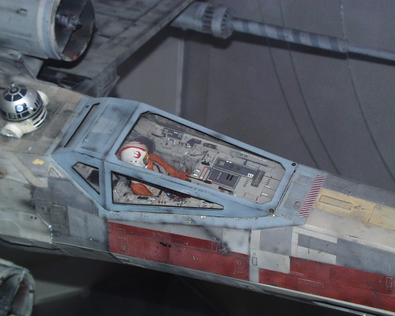 De los mejores modelos de Xwing que he visto por ahí. Coincido con Mars en que el r2 esta, tal vez, demasiado iluminado, y con la mayoría en el interior de la cabina, le falta que la detalles mucho más. Los cristales de la misma, además, tal vez deberías ahumarlos un poco, que en las películas dan sensación de ir algo tintados, mientras que los tuyos son demasiado incoloros.