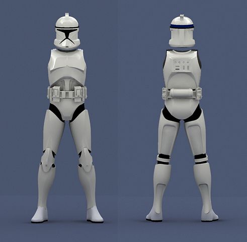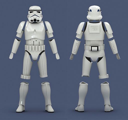 Creo que, y como ya te dijo Shazam, fallan un poco las proporciones. Te dejo esta imagen para que compares. Fíjate también este enlace (si es que ya lo conoces) donde puedes encontrar desde los personajes, hasta las naves, escenarios y demás de Star Wars (podes bajarlos en varios formatos). Tal vez te puedan servir de referencia http://scifi3d, theforce.net/list.as...10&intcatid=13.
