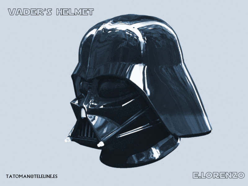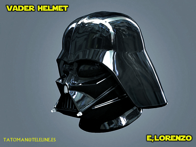 Pues como siempre entre modelo y modelo me lío con algún proyecto antiguo (el caso es no estarme quieto)y es que el y Wing me tiene comida la moral con tanta piececita, así que, me puse con pruebas de material del casco de Vader que nunca llegue a terminar del todo y esto es lo que salio, lo he pasado por Photoshop y ha quedado con un aspecto de fotografía que no me acaba de convencer, aunque el resultado no es del todo malo, esta renderizado con Vray y tiene un material Vray con un fallof en la reflexión y una mapa HDRI (el mismo) en entorno y en IOR la otra queda algo mejor.