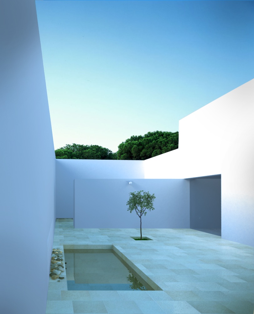 Hola a todos, basándome en fotografías e intentando ser fiel a la filosofía del arquitecto he realizado este render. Esta renderizado con Vray con una iluminación de una única luz solar (Vraysun) y Physical Camera. Las correcciones de color están hechas con Adobe Photoshop.