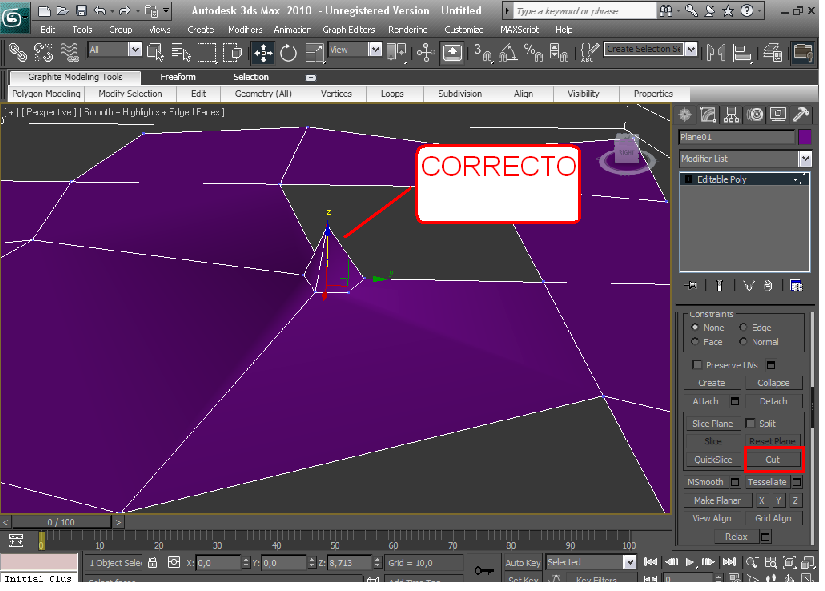 Poligono edit poly de 4 vértices que pertencezca a un mismo plano y no se alabee
