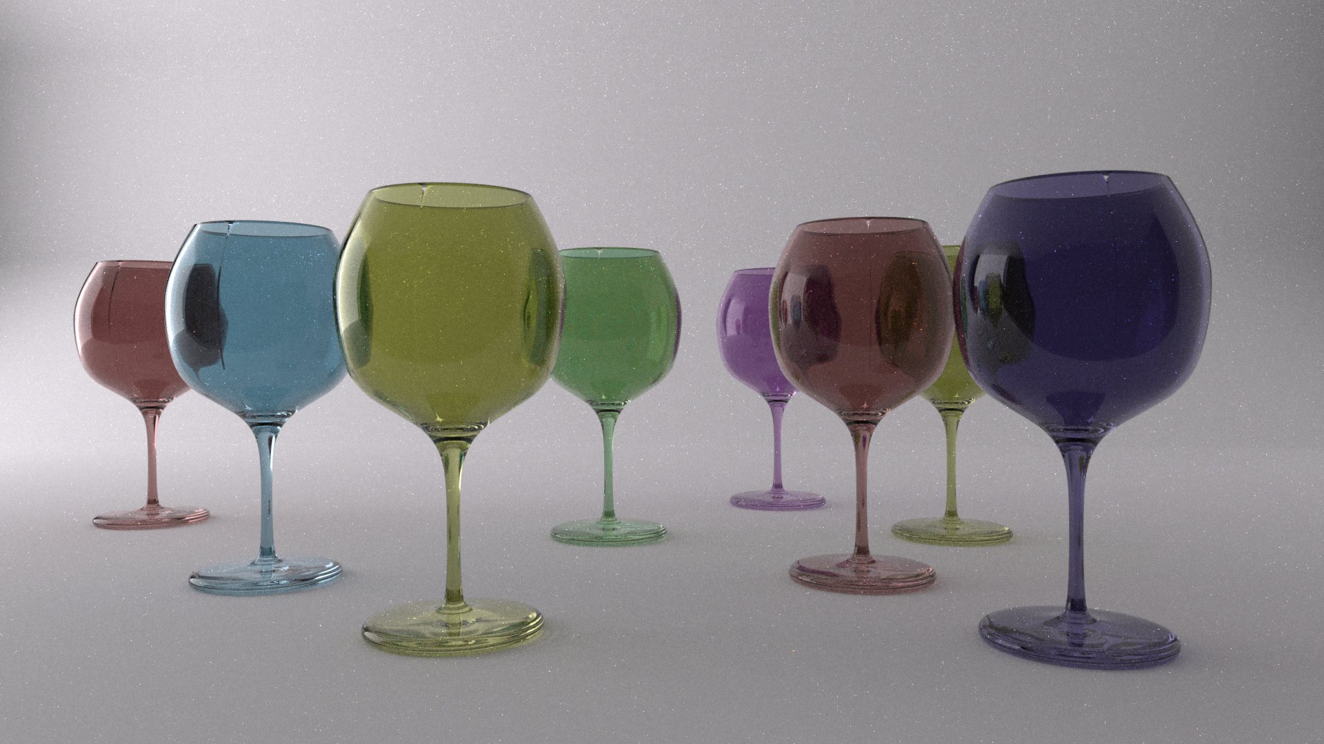 Es una variación de un tutorial que hay en el foro de lux (y en youtube), donde solamente he añadido más copas a la escena y les he dado diferentes colores.