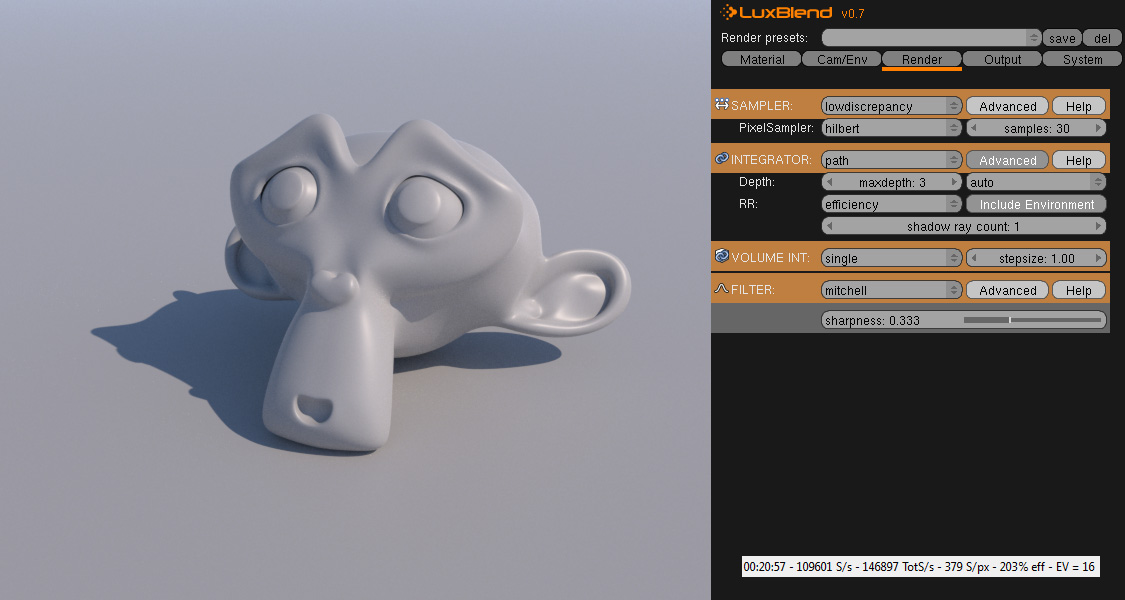 Por si acaso, al final de éste enlace dan algunas pautas para acelerar el resultado: http://www.luxrender.net/wiki/index....ender_settings.