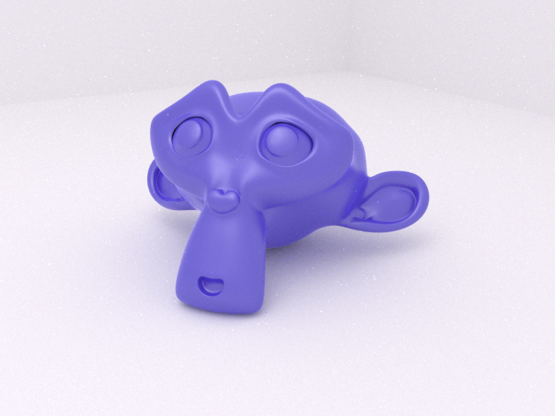 El material de suzzane es un Glossy levemente anisotrópico, mientras que el entorno tiene un material gris mate, a la vuelta, actualizamos.