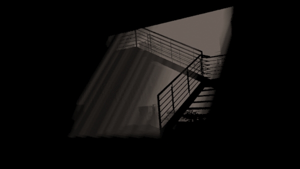 Faltan algunos detalles de texturizado que debo corregir, pero en general lo que quiero mostrar y dar énfasis es el patio de luz que se forma a la derecha de la imagen, que se perciba esa idea de entrada de luz y de espacio, he estado viendo fotografías y tratando de comparar con espacios similares cómo se comportaría la luz en esos casos, la verdad es que no sé si logro porque de tanto ver la imagen uno se confunde y como que pierde el foco.