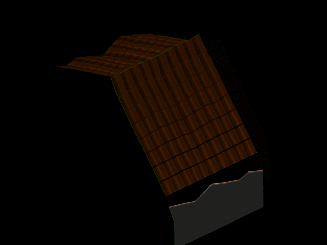 El problema es que en mí mapa de desplazamiento, aunque fuera un (*.png) con fondo transparente, el editor de materiales del 3dsMax lo tomaba como blanco y como el mapa de desplazamiento va desde el nivel mínimo sin relieve (negro) hasta el nivel máximo (blanco dependiendo del amount), pues consideraba que ese fondo transparente (tomado como blanco) era una superficie plana que sobresalía y que ocupaba todos los polígonos que no pertenecían al tejado, por esta razón se separaban y se rompían las pareces de la casa. Todo solucionado poniendo el fondo del (*.png) para el displacement map en negro.