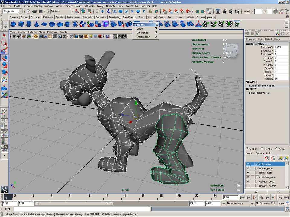 Estoy convirtiendo Nurbs a Polygons, estoy haciendo la figura de un perro, lo cree con Nurbs y estoy convirtiéndolo en Polygons, al principio todo bien, pero cuando intento unir el cuerpo y una de las patas, se me desaparece lo que he seleccionado. Alguien me podría ayudará.
