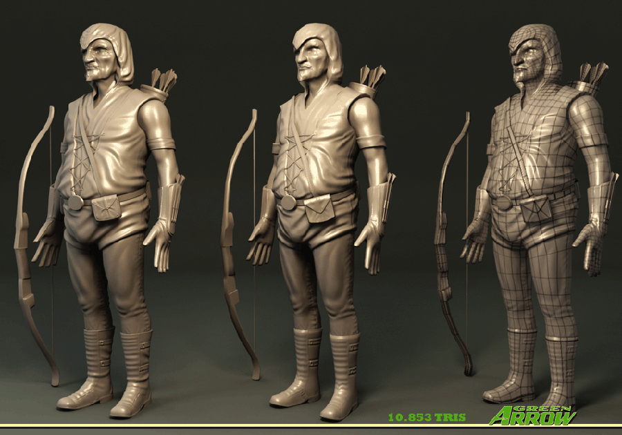 Está modelado con Maya, el modelo en alta con Mudbox quedando un total de 10853 triángulos.