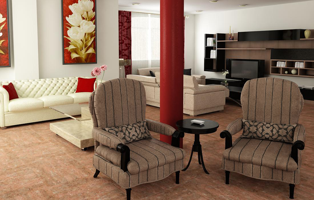 La imagen es tal cual, no se la puede tocar ya que he presentado este render que lo he realizado para una diseñadora de interiores, es mi primer trabajo, todo el mobiliario lo he creado yo, menos los adornos, flores y demás, así que, sí, yo también cambiaría alguna cosa, pero la dueña de la casa lo quiere así y punto.