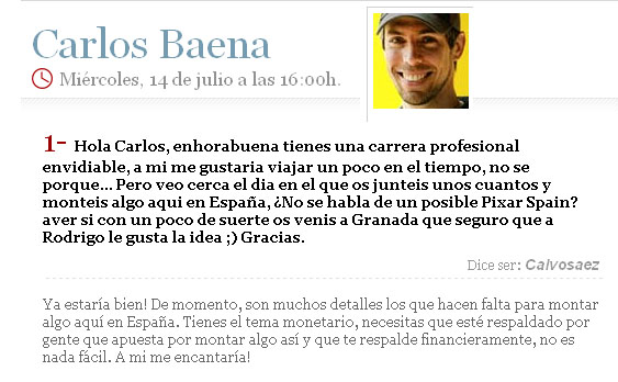 Me he enterado de la noticia por Animation Mentor, lo han puesto en las news y ya me imaginé que lo estaríais celebrando por aquí. Muchas felicidades y enhorabuenas a todos los implicados, y sobre todo a Jor, que es el que más cerca me toca.