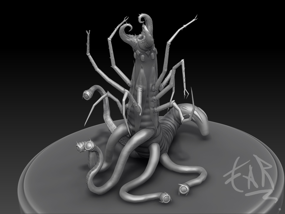 Hola amigos, tenía mucho tiempo sin publicar nada, pero es que, estaba aprendiendo más cosas, como siempre, y ahora ando aprendiendo a usar el ZBrush y ya e echo algunas cosas, particularmente ahora ando modelando una criatura que vi en una imagen, le puse como nombre gusano alien porqué bueno, es lo más cecano a lo que parece, espero que les guste cómo va quedando. Aún me falta detallarlo un poco más para que se vea mejor y después darle color.