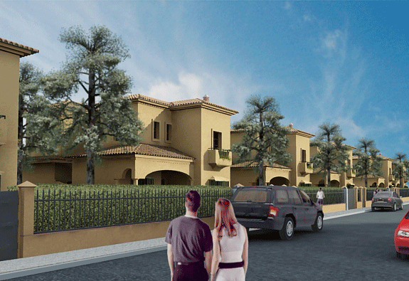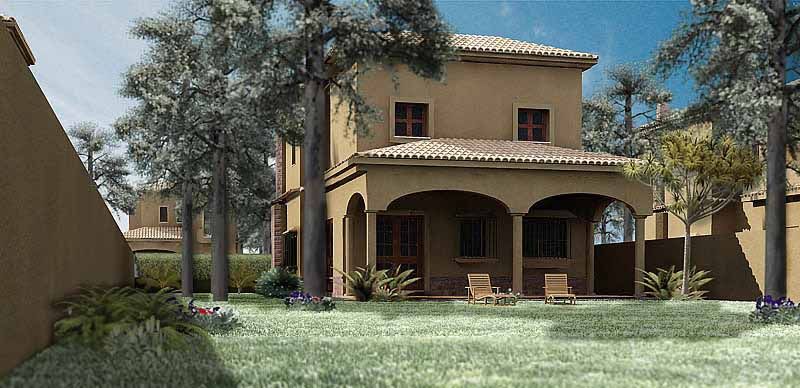 Buenos días, aquí publico una imagen de una promoción de Chiclana, que me ha dado muchos dolores de cabeza no por lo complicado si no por los problemas del cliente que lo único que quiere es verlo terminado y e cambiado partes de los chalets 5 veces hasta quedar así y aun así tiene fallos por que el pino que buscaba que es el típico de esta zona no lo he encontrado y creando mapas de opacidad no le gustaban. Otra cosa es la iluminación no sé que le a pasado al modelo que al iluminarlo me creaba sombras muy raras, en fin, un show. Bueno espero que me matéis a críticas mu esto la perspectiva que más problemas me ha dado y la que menos me convence.