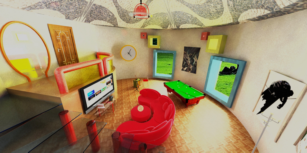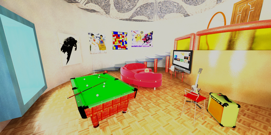Gracias mundo 3d, se supone que la luz viene del exterior, puse una luz por cada ventana, pero me parece que se ve muy iluminado, creo que tendría que disminuir la potencia de las luces de las ventanas amarillas y me parece que las luces de las ventanas azules están bien, solo no me gusta que se marca ese punto luminoso en el muro cómo se ve en la segunda imagen.