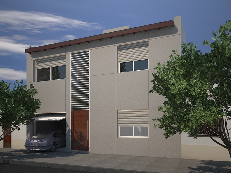 Hola villero, comentaré la 1era imagen del exterior corregiría el fondo en Adobe Photoshop, ya que la fachada el diseño no ayuda, le daría más calidad a las sombras, y colocar una puerta en 3d ya que está muy plana, el auto no me gusta mucho y no tiene rampa en la vereda.