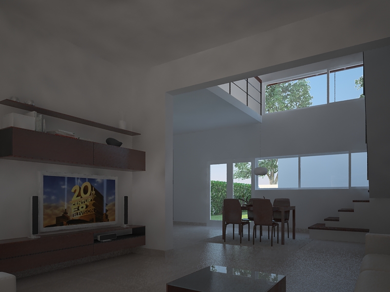 La 2da imagen insisto con el displace en el Grass, mover el sol para que contraste mejor los volumnes, terminar de texturizar, ejem la escalera, y ambientar el interior, la ambientación de plantas está muy buena, saludos.