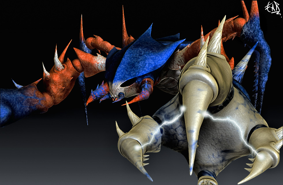 Vaya ta bueno ese cangrejo, a pesar de tener varias cosas queharían que el modelo se viera saturado has manejado muy bien la parte del modelado, ojalá me dijeras con qué programa texturizar o quetécnica usas, como en lo del rata mutante. Saludos, ya quiero ver ese modelo con textura.