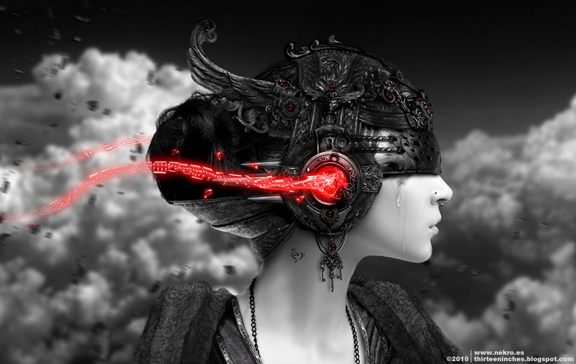 Aparte de los trabajos que podéis ver en la galería de ilustración de la escuela, podéis ver más obras de nekro en los diversos portafolios que tiene en la red, como en cgsociety o Devianart o en su página oficial http://thirteninches.blogspot.com/.
