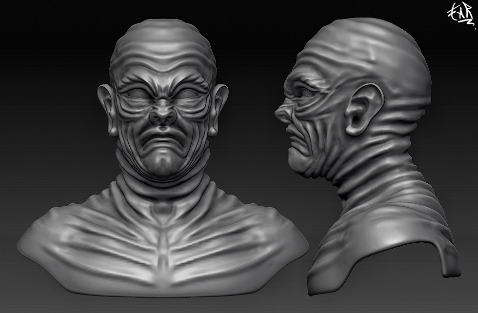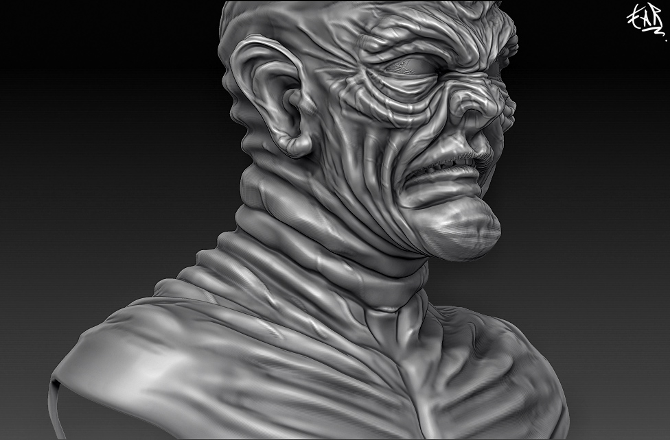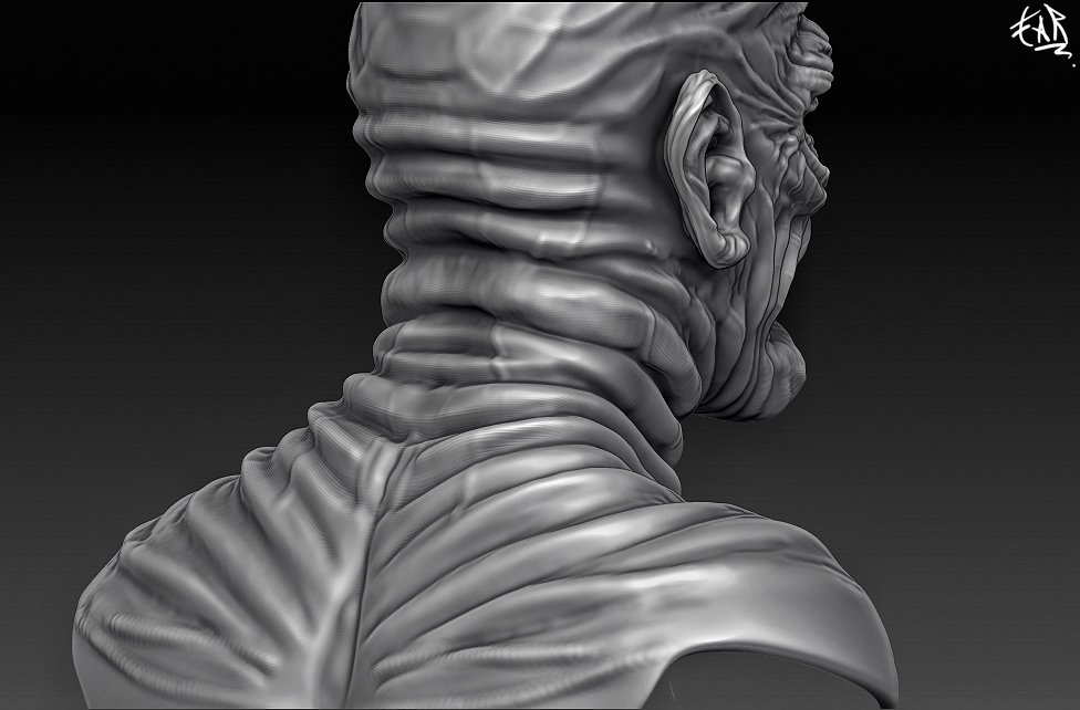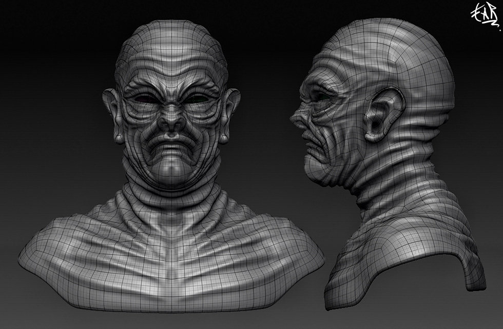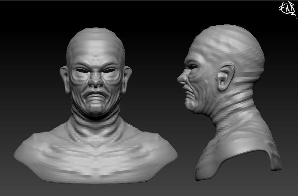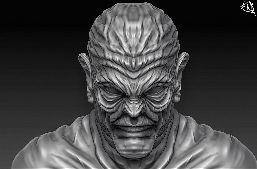 Tideger: de antemano cordial saludo, veo que vas por muy buen camino, y felicitarte por la escultura, pero quería preguntarte, es un personaje de producción o para ilustración, porque para producción veo que la topología sin subdivisiones no tiene el detalle necesario pienso y veo es solo una opinión personal, porque ya es un desplazamiento y veo que la Maya base no está soportando óptimamente esa topología, siempre que empiezo un proyecto de estos primero hago la escultura y luego una re topología necesaria para animación, que tenga una topología muy cercana al sketch para luego extraerle mapas necesarios, y no tener que utilizar un mapa de desplazamiento que nos complique un poco la vida en render, veo también que la oreja no es correcta su anatomía, pero bueno son detalles que vas a ir mejorando durante tu proceso.