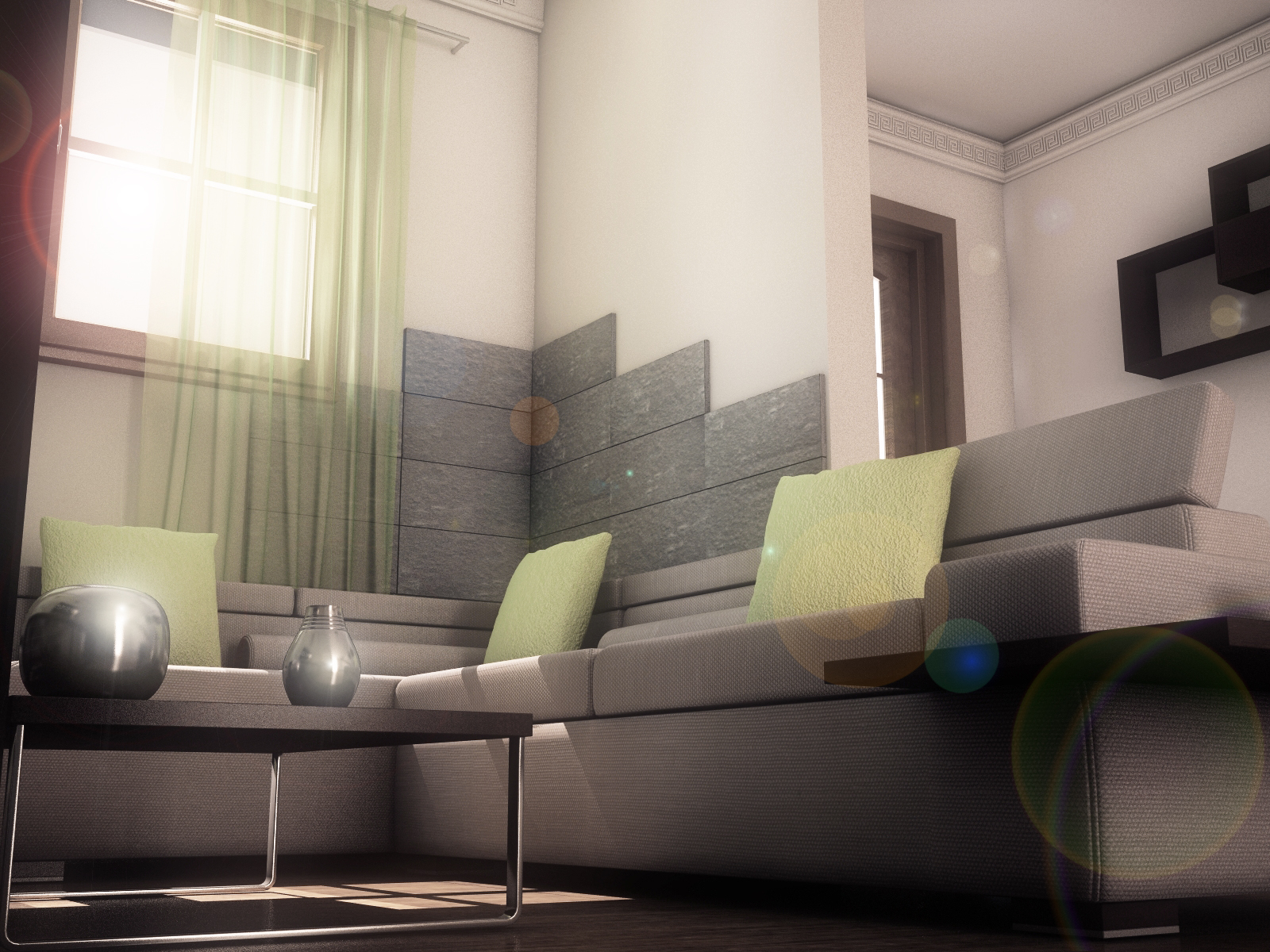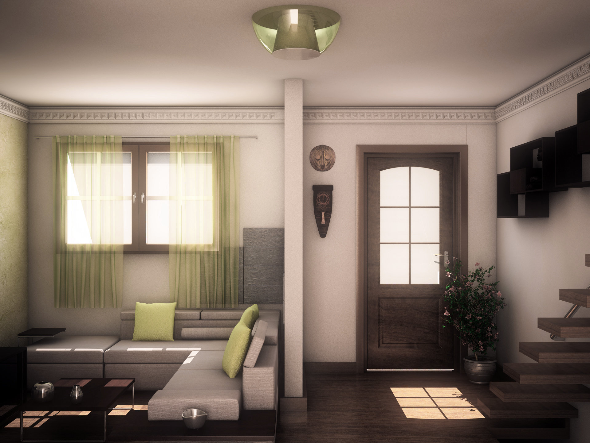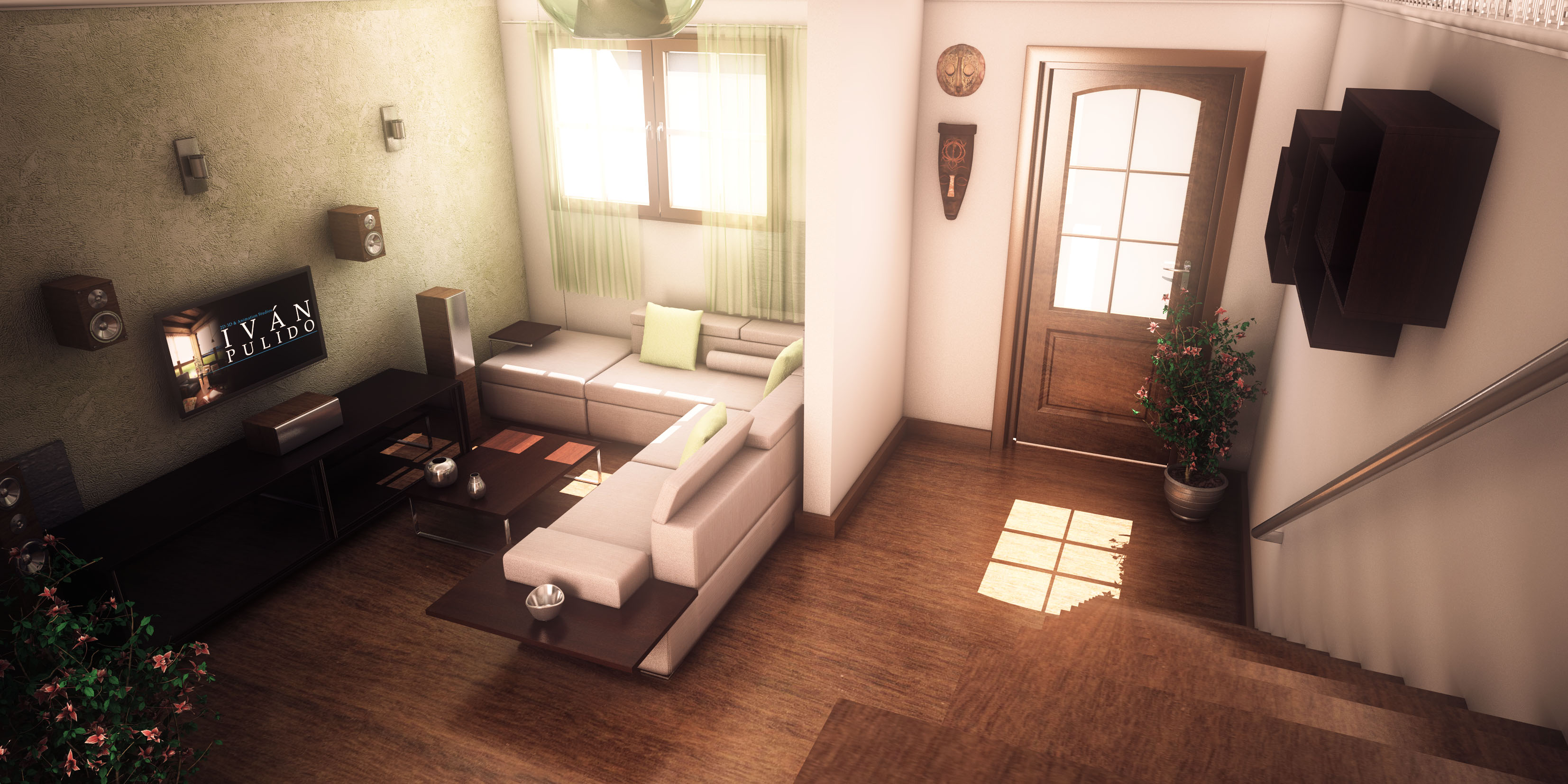 Buenas Iván, están buenos los interiores. Si me permites me gustaría señalar algunas cosas que mejoraría. Primero darle también la razón a sui. Pero te agrego, en la 1a y 3a está muy duro el borde de la luz que entra por la puerta, entre que la luz paso por un vidrio, y la textura del plano en que incide (en este caso el piso), debería tener un borde más difuso.