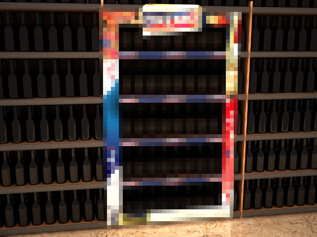 En cuanto a lo de las botellas negras, si bien no puedo encontrar cual es mi error, porque no es el material ni el render (ya que si las saco de la góndola aparecen iluminadas).