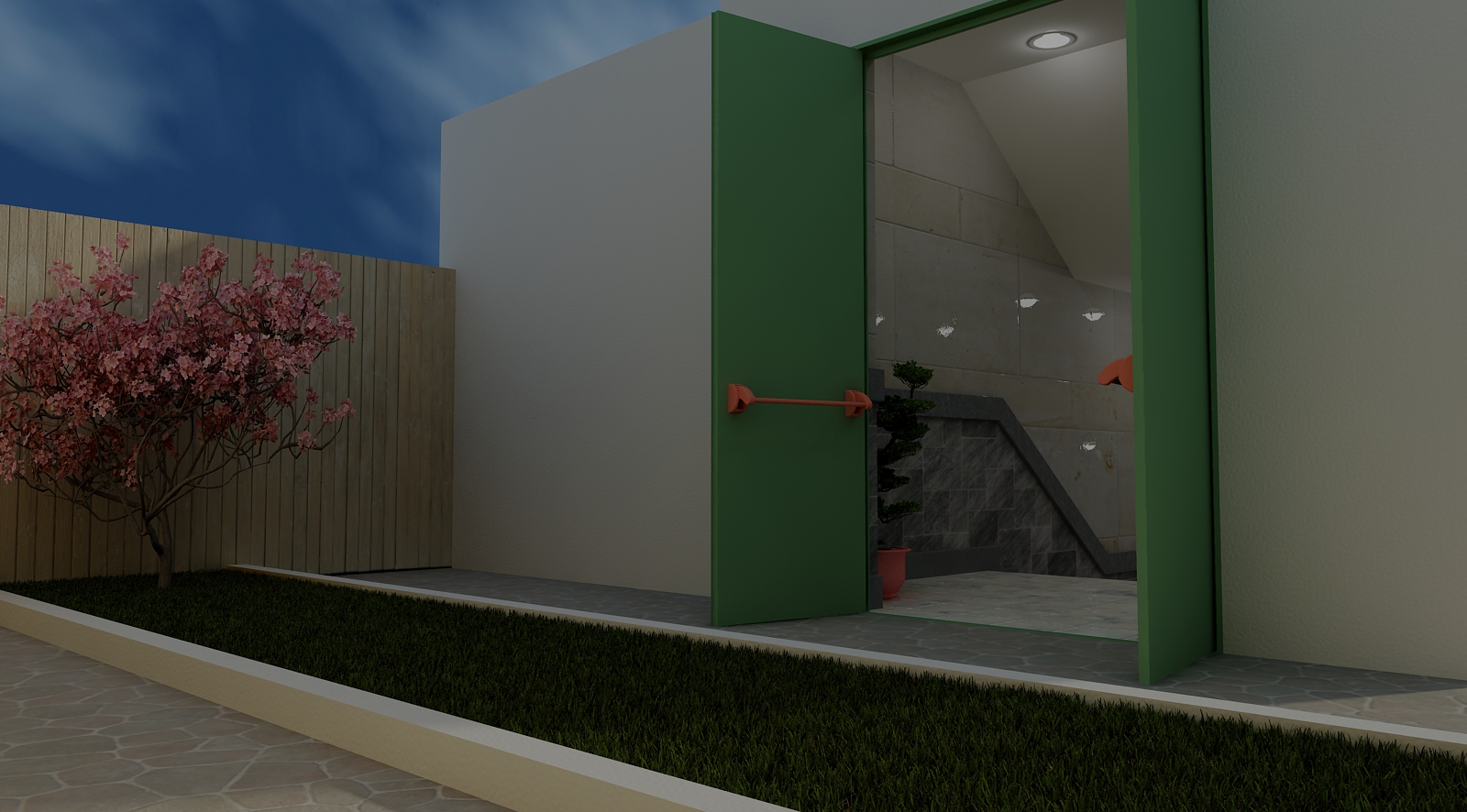 Muchas gracias a los dos. Todavía le estoy dando unos retoque con el tema de lauz, aún no consigo encontrar un equilibrio para que no se me que me ni quede demasiado oscura, el césped lo hice con autograss 1.0 y da muy buenos resultados.