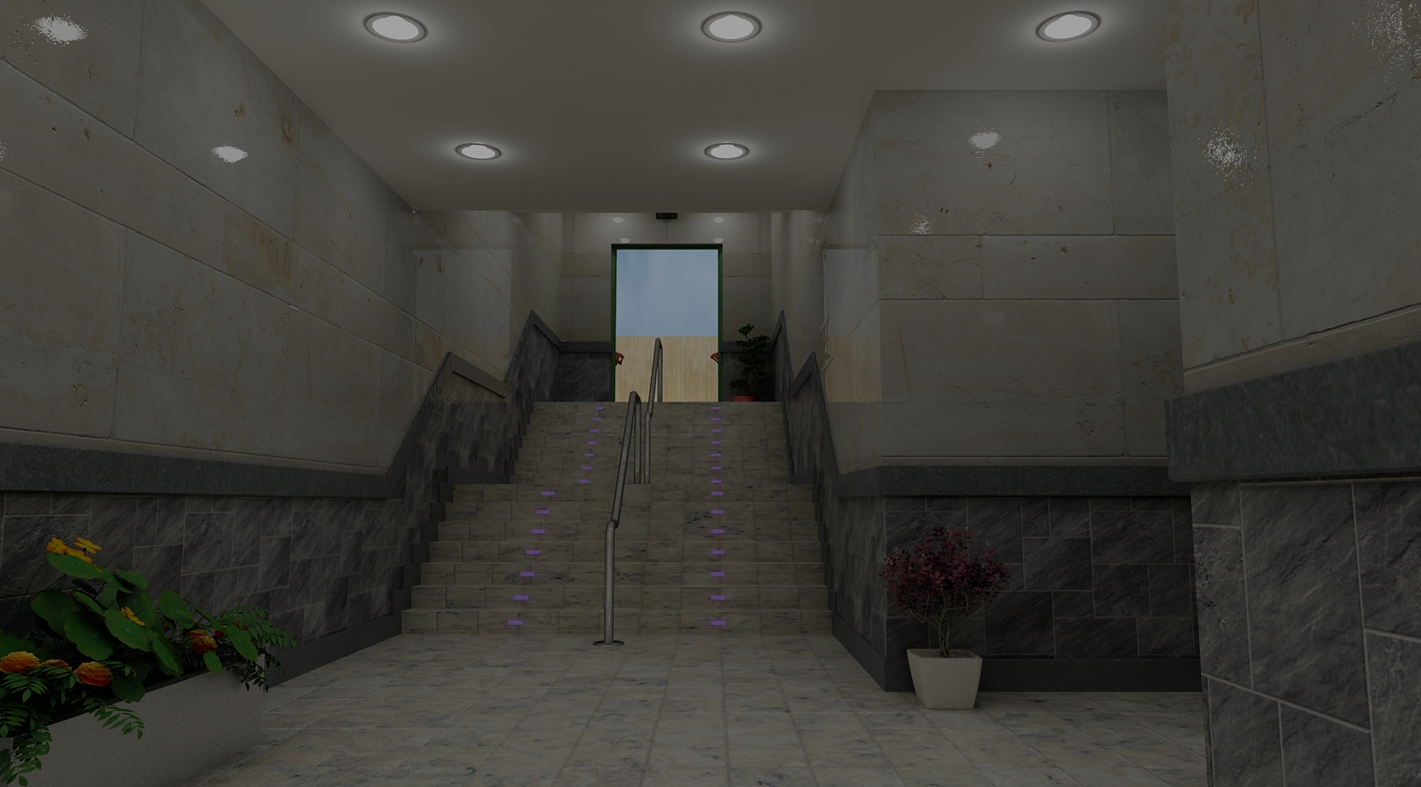 Tal vez puedas agregar luces en el interior sobre todo porque hay una escalera, creo, y alguien podría lastimarse.