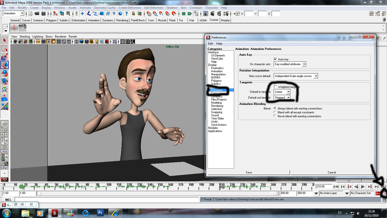 Te dejo una captura de pantalla para que sepas donde se pone en Maya las curvas en stepped o de cualquier otro modo. En el segundo wip (no había visto) veo el tema un poco mejor, cuando te digo que este más estructurado hablo simplemente de que tengas cuidado y seas consciente de que claves tienes, porque si no, en el momento que pases a linear será una locura el controlar todo si no hay una estructura correcta en el blocking, por eso te comente, lo de las posturas que cuenten la historia y después ir añadiendo algún breakdown para dar personalidad, anticipaciones, generar arcos, etc.