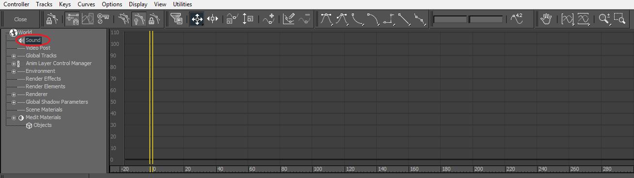 Hola mundo3d. Yo soy usuario de 3ds Max y el audio lo añado buscando la opción world->sound y doble click en la parte derecha del timeline. Te dejo una imagen y un enlace donde también lo explican. http://answers.yahoo.com/question/in...12202344ar44d9. Un saludo.